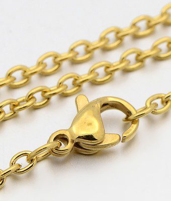 Čelični lančić zlatne boje od nehrđajućeg čelika. Lančić šaljemo u ukrasnoj kutijici.