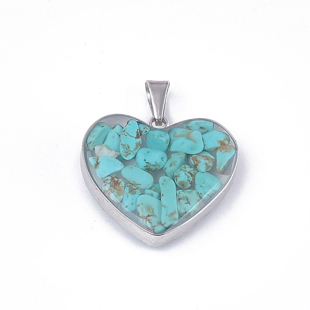 Hovlit privjesak – komadići bojanog hovlita u staklenom i čeličnom srcu