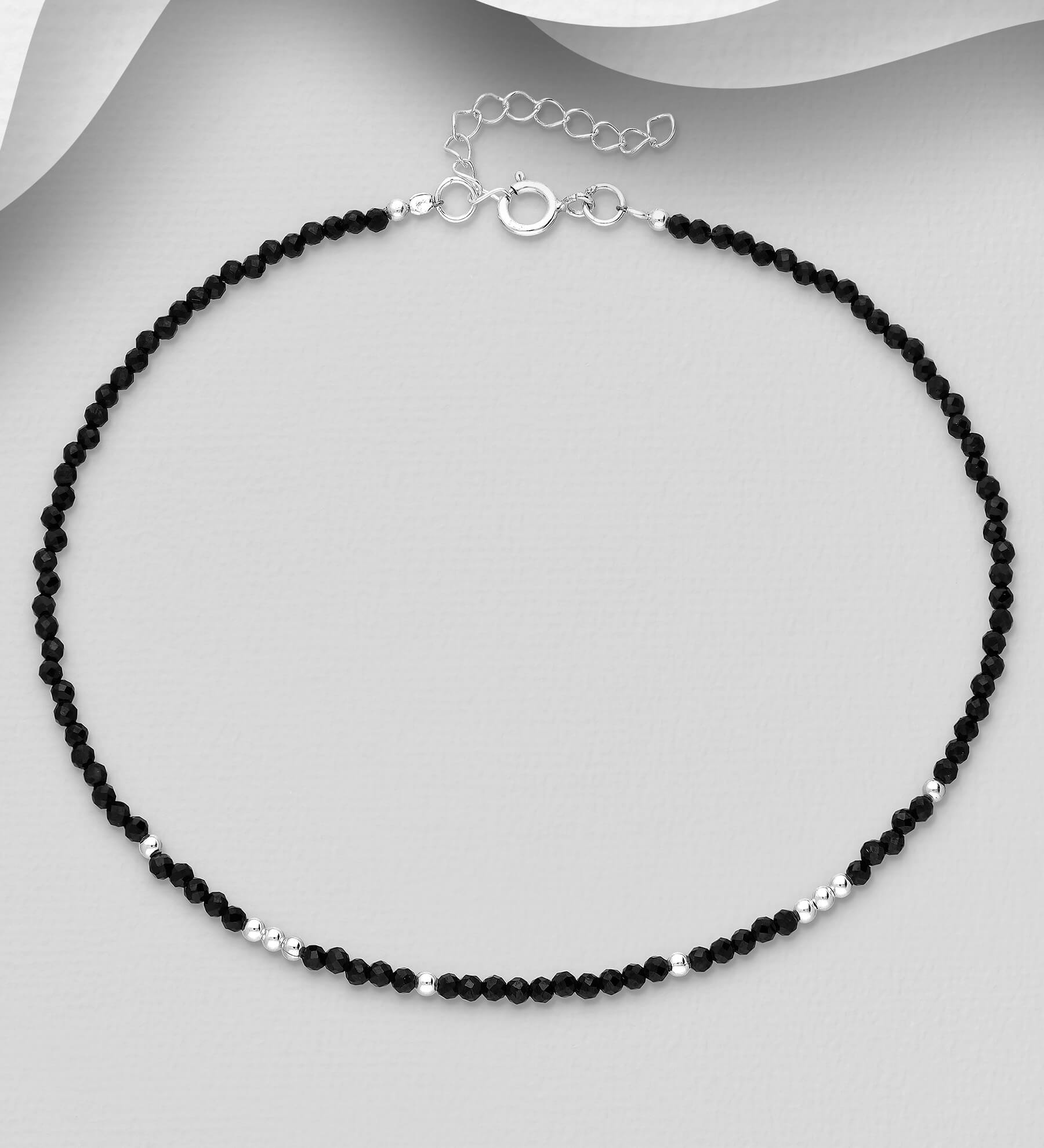 Nanožnica srebro 925 i poludragi kamen crni spinel