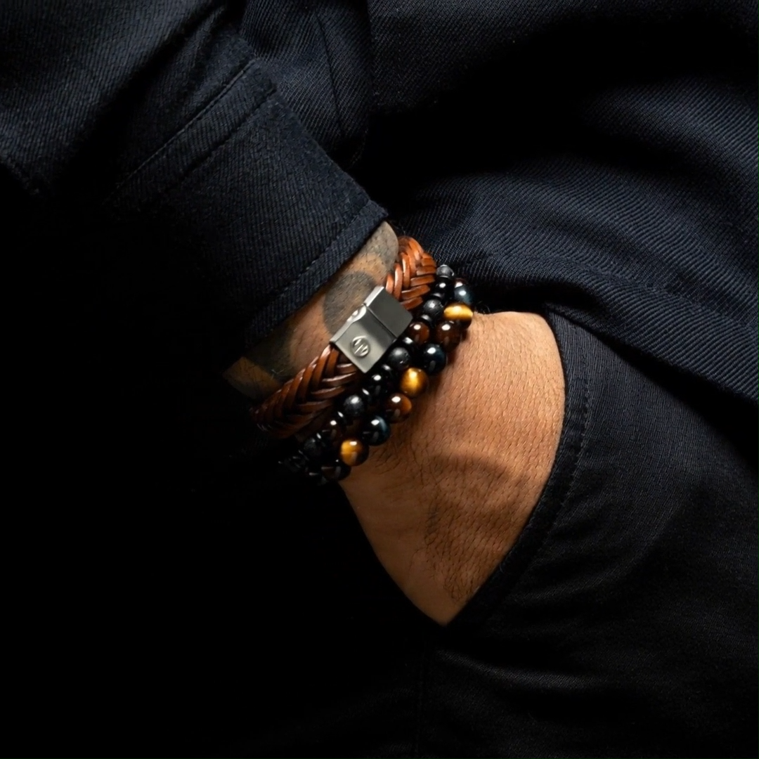 Rebel & Rose narukvica Who’s afraid of the Tiger (8mm) “Tko se boji tigra?” S ovom narukvicom – nitko. Ručno izrađen model  donosi moćnu fuziju triju varijacija Tigrovog oka: vatrenog crvenog, smirujućeg plavog i klasičnog žutog. Perle od 8 mm nanizane su oko masivne kopče u srebrnoj boji, stvarajući odvažan komad nakita za muškarce koji kroz život koračaju bez straha.