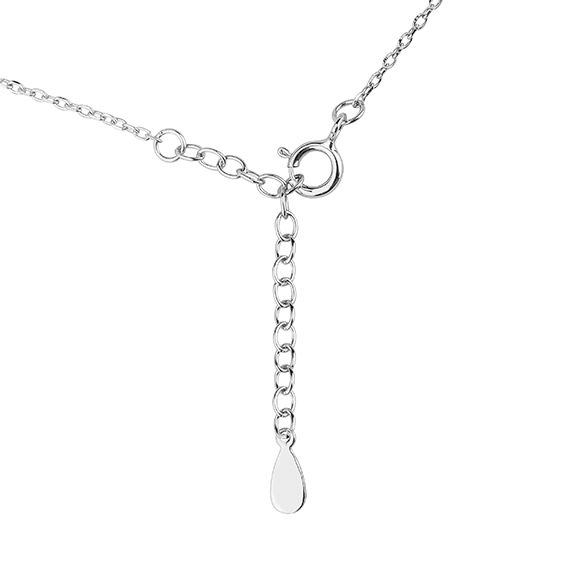 Ogrlica je rodinirana i ukrašena cirkonima. Rodij štiti nakit od tamnjenja i daje dodatni sjaj