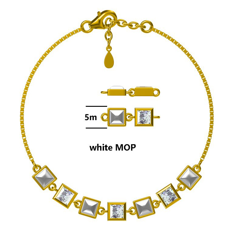 • srebro 925 (92,5% srebro), cirkoni, školjka