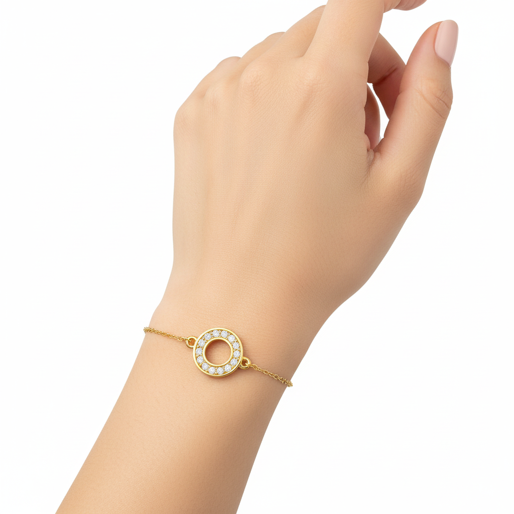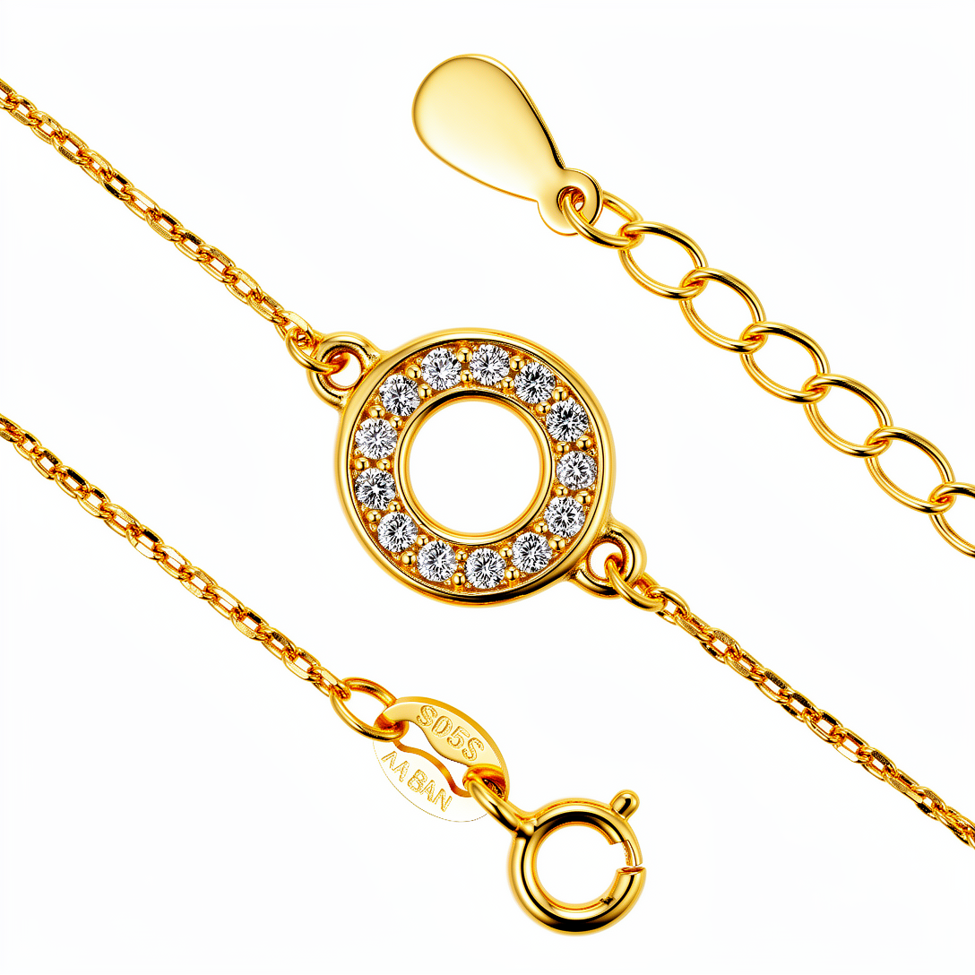 Narukvica je presvučena 18k zlatom i ukrašena cirkonima.