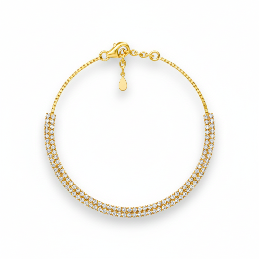 Narukvica je presvučena 18K zlatom i ukrašena je cirkonima