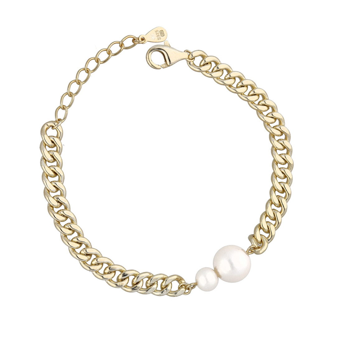 Srebrna narukvica slatkovodni biser sa pozlatom