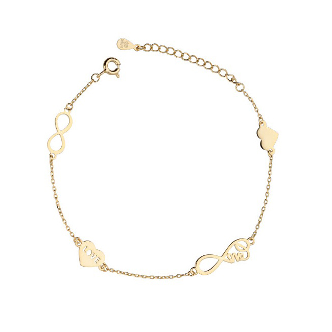 Srebrna narukvica srce i infinity s 14 karatnom pozlatom