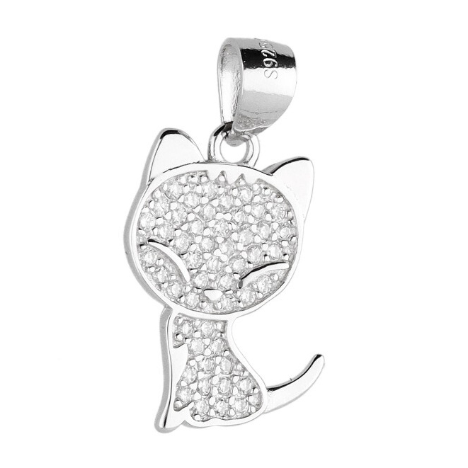 Srebrni privjesak mačka ukrašen sa cirkonima