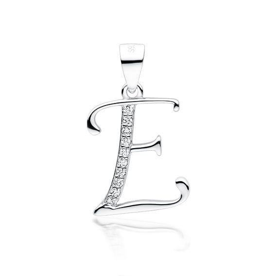 Srebrni privjesak sa cirkonima slovo E