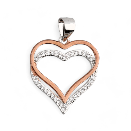 Srebrni privjesak srce s cirkonima, jedno je presvučeno rozim zlatom
