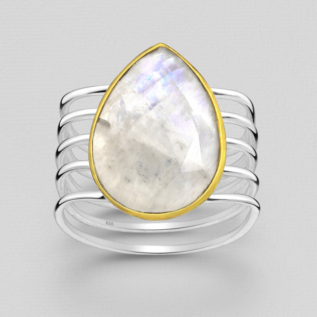 Srebrni prsten sa mjesečevim kamenom, djelomično pozlaćen sa 3 mikrona debelim 18 karatnim zlatom