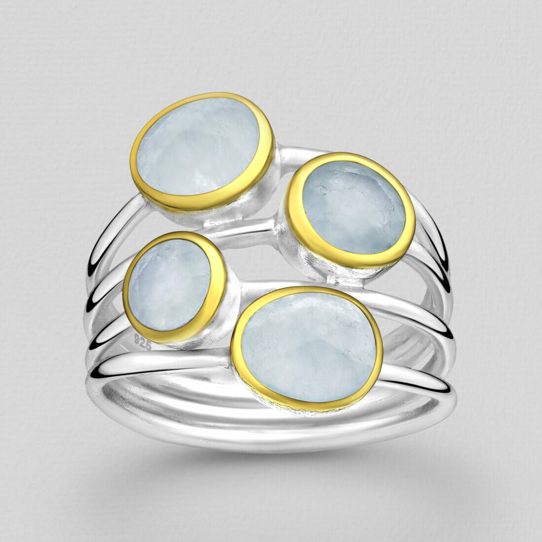 Srebrni prsten sa mjesečevim kamenom, djelomično pozlaćen sa 3 mikrona debelim 18 karatnim zlatom
