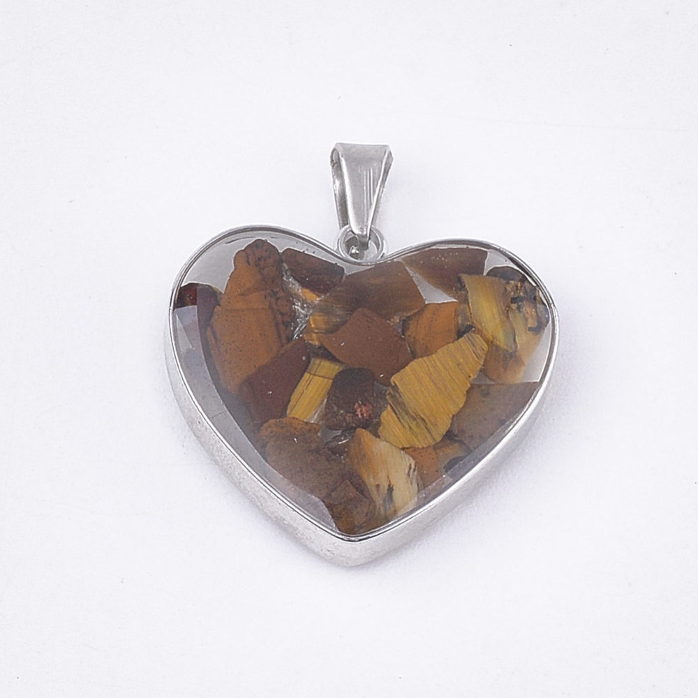Tigrovo oko privjesak – komadići tigrovog oka u staklenom i čeličnom srcu